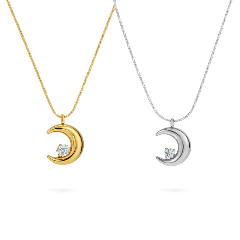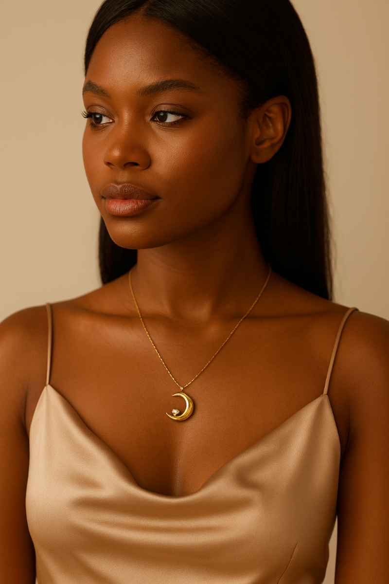 Channel the serenity of the night sky with the Celestia Moonlight Pendant, a dreamy crescent moon necklace that captures the elegance of celestial beauty. Nestled within the crescent is a sparkling cubic zirconia crystal — like a radiant star glowing with ethereal charm.